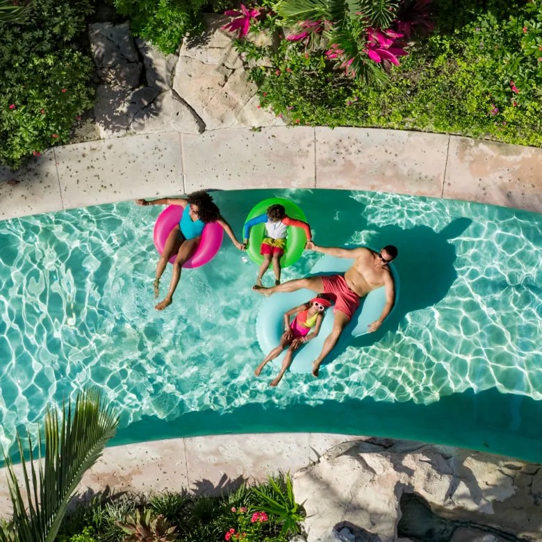 Each resort features exciting water parks with slides, lazy rivers, and splash zones designed for all ages.